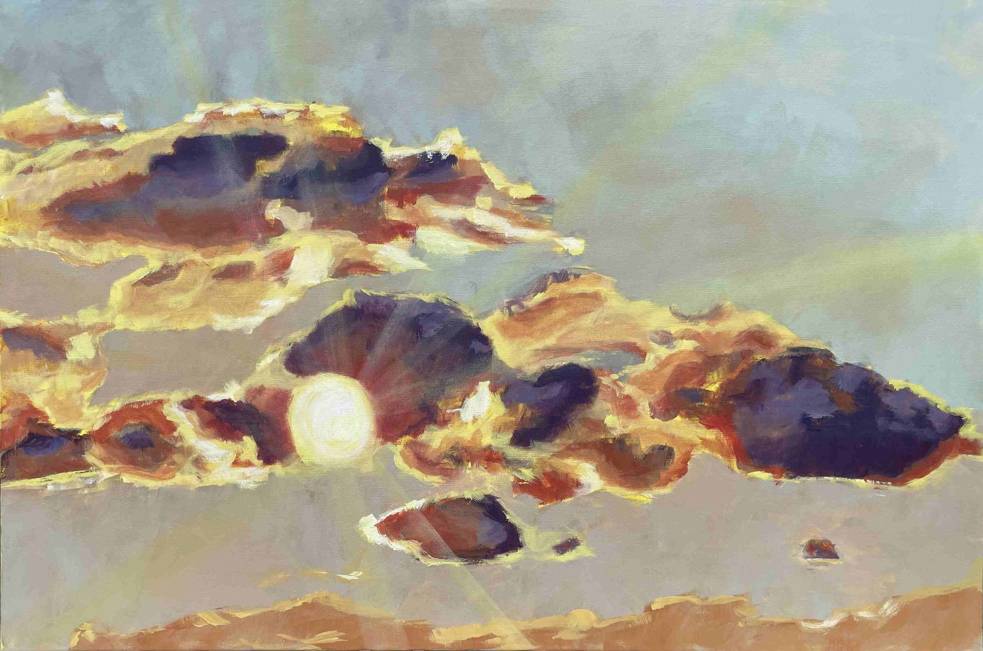 On the Kenai Peninsula, the sun brings vibrant color to the clouds as it sets over Cook Inlet. This glowing sunburst captures that feeling, illuminating your path with optimism. The bright, exuberant brushstrokes create a feeling of movement that encourages you to embrace new opportunities and move forward with confidence.